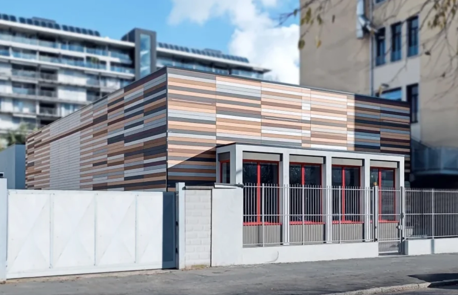 Modular εφαρμογή σε κάνναβο αλουμινίου με αρμούς διαστολής, απορροές και σωστή αγκύρωση. Η κρυφή στήριξη εξασφαλίζει καθαρό αποτέλεσμα και ταχεία τοποθέτηση, ενώ η ανθεκτικότητα του WPC μειώνει επισκέψεις συντήρησης, κρατώντας σταθερή την εικόνα στο χρόνο.
