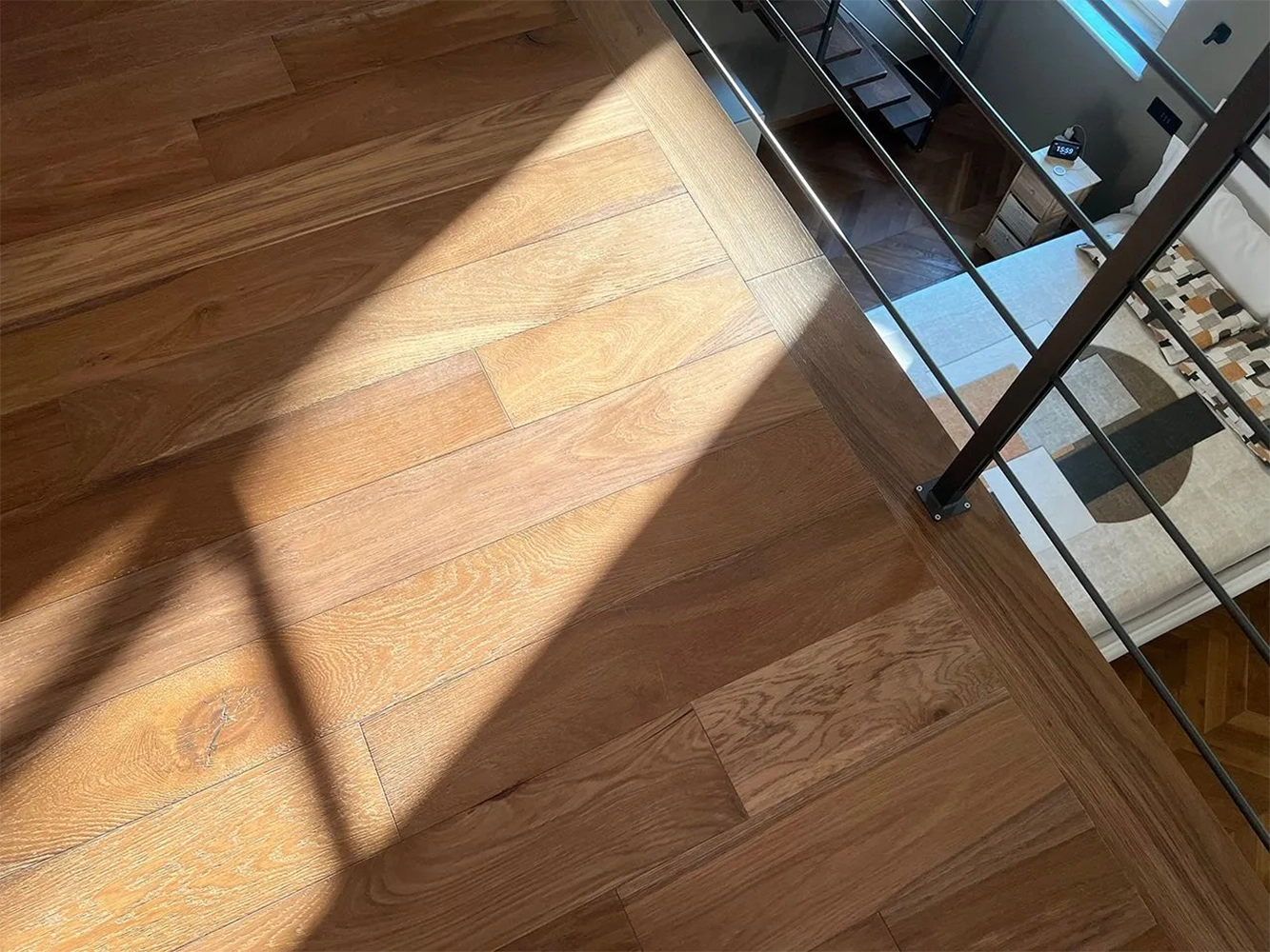 Η πολυστρωματική δομή με σταθερό πυρήνα περιορίζει διαστολές-συστολές από υγρασία και θερμοκρασία. Η φινιρισμένη επιφάνεια με βερνίκι ή λάδι ενισχύει ανθεκτικότητα σε φθορά και λεκέδες, διατηρώντας υφή, βάθος και φυσικό χαρακτήρα του ξύλου.