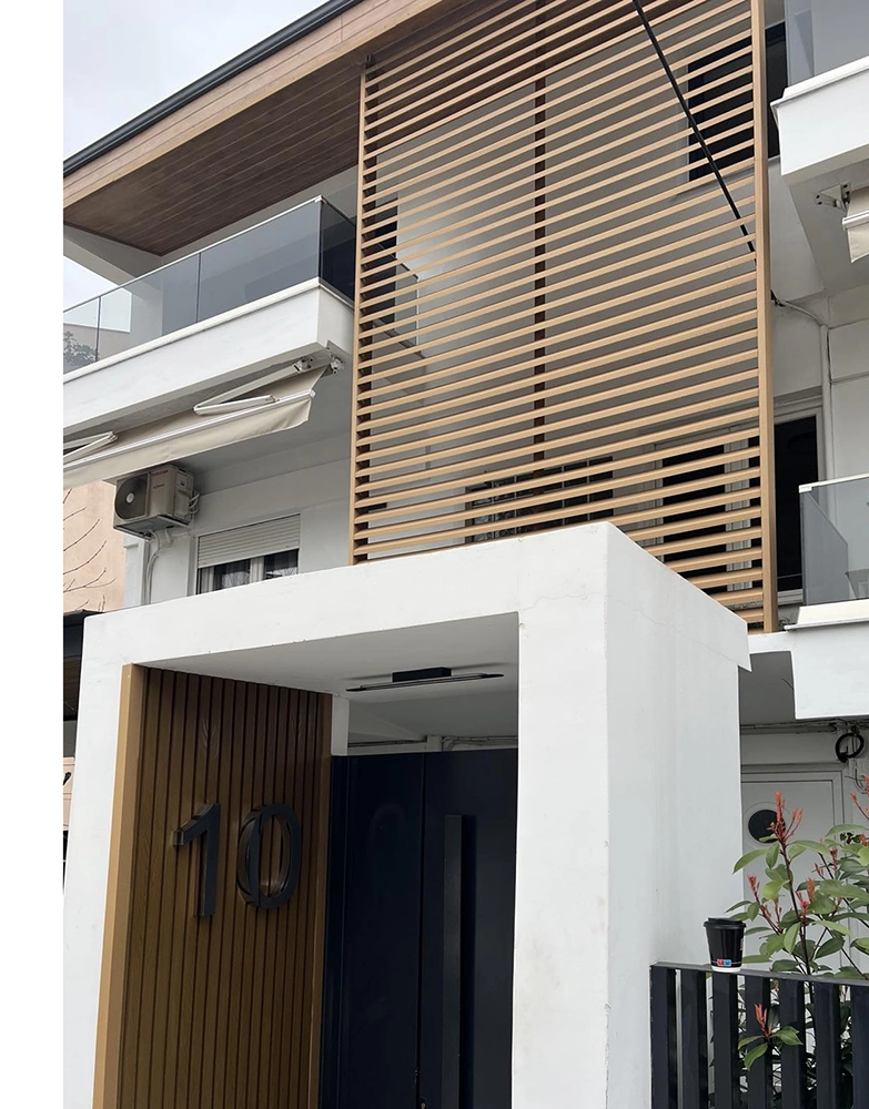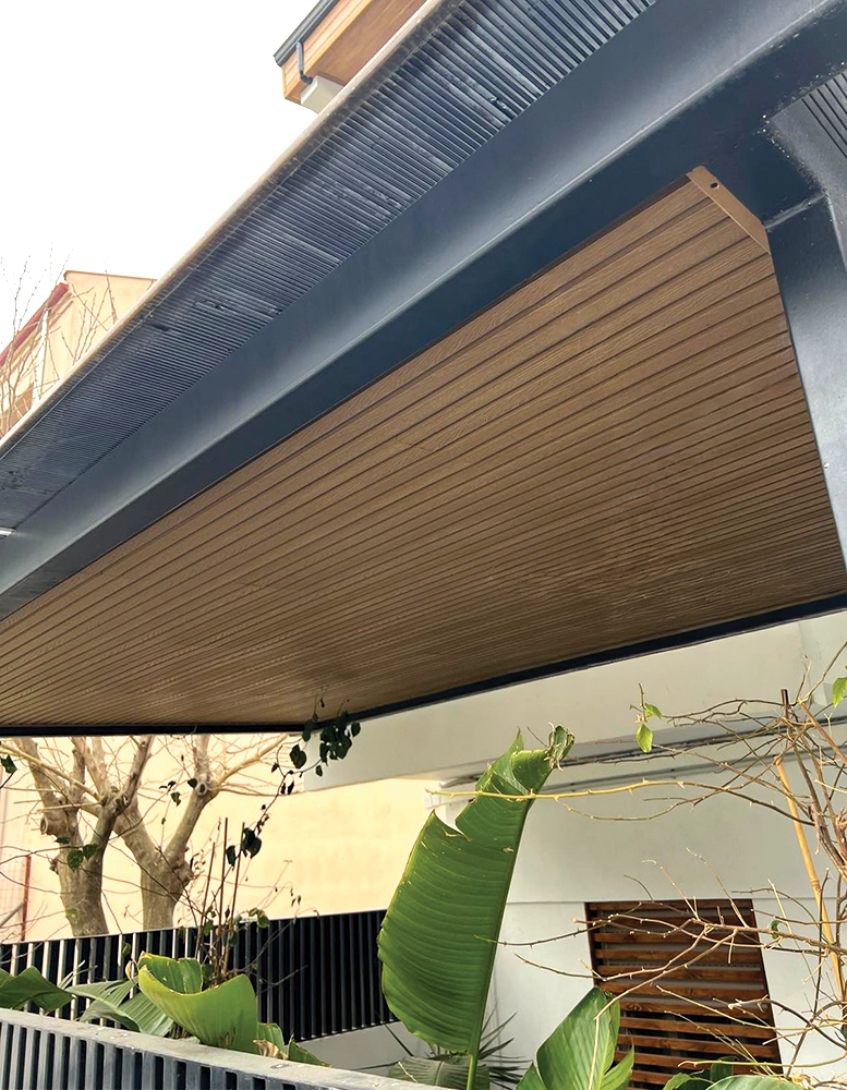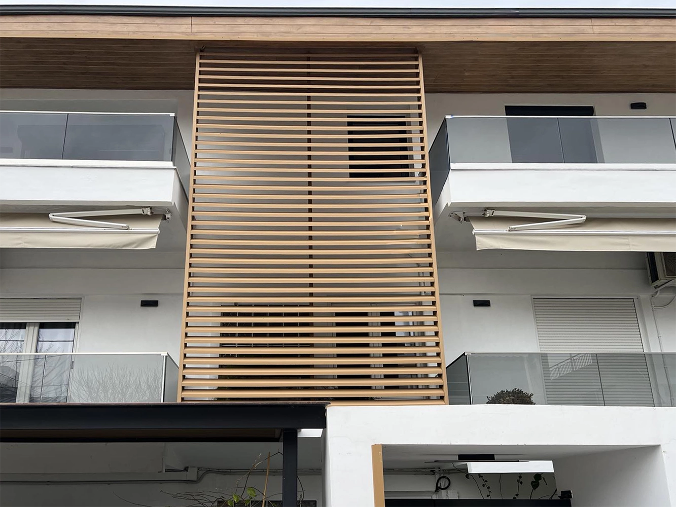 Σανίδες/δοκοί με ματ ή βουρτσισμένες υφές, φυσικά νερά και παλέτα γήινων αποχρώσεων. Γεωμετρίες ευθείες, διαγώνιες ή «σκιάστρα-περσίδες» για στοχευμένο έλεγχο ηλιασμού. Ενσωματωμένος φωτισμός, κουρτίνες, περσίδες και πλαγιοκάλυψη ολοκληρώνουν το σύστημα με συνεκτικό design.