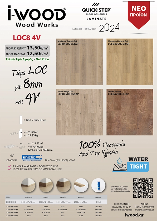 Από κλασικές έως σύγχρονες, απαλές αποχρώσεις, η παλέτα προσφέρει ρεαλιστικό ανάγλυφο και αρμονική κίνηση νερών. Διαθέσιμες σανίδες για επιμήκυνση οπτικού άξονα και ενιαία αίσθηση χώρου, κατάλληλη για minimal, nordic ή warm contemporary concept.